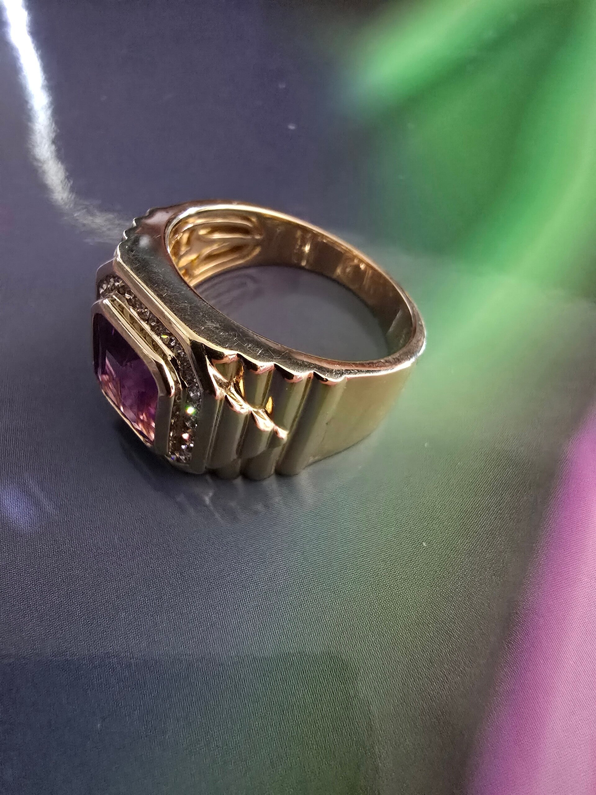 Stunning 14k solid yellow GOLD ring 2.5k amethyst with 0.5 diamond accents. 10gm