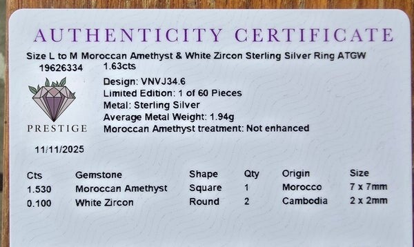 Size L to M Moroccan Amethyst Zircon Sterling Silver Ring ATGW size 6